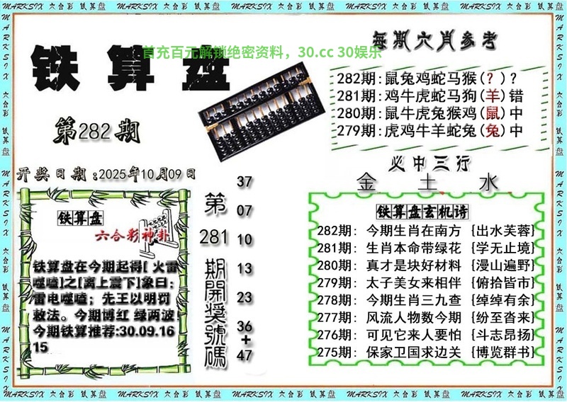282期:吉凶两肖【凶丑+马羊】开:牛41准 |